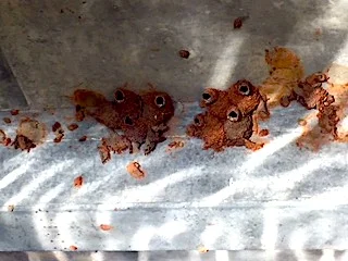 The next morning as Jeff and I paddled our kayaks under a bridge, we looked up into the underside, which was covered with blobs of red clay alien-looking nests. The swallows flew out and filled the blue sky above our heads.