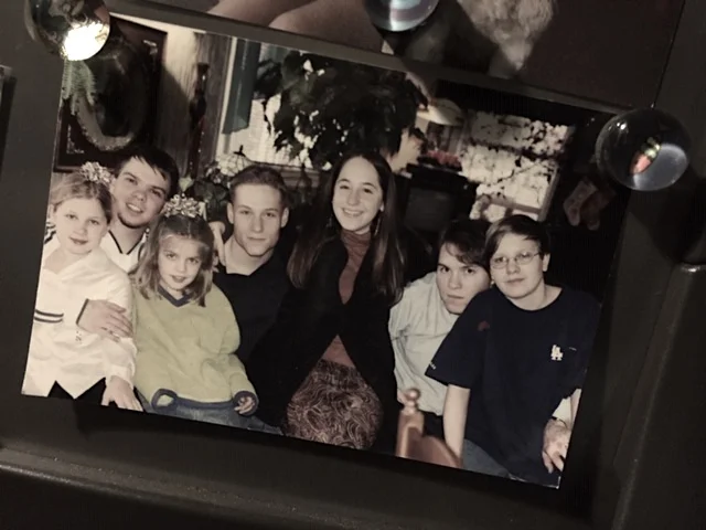 From the photograph, seven faces smile back at me. Behind them I see homemade felt stockings hanging from the mantel in my mother's house. Out of sight to their right, I know there is the Christmas tree with redbirds and pearl garland. Seven cousins of four different mothers of seven different ages and different places; arms wrapped around each other from a distance of 20 years ago. Over the past days and nights, I have touched each one of them. My heart is full and overflowing.