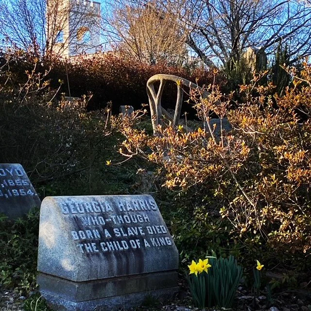 This was bold and powerful love. This was in a cemetery that was segregated until the 1960s. Yet here she was, in death as in life with the family who loved her. Daffodils were starting their bloom next to her grave.