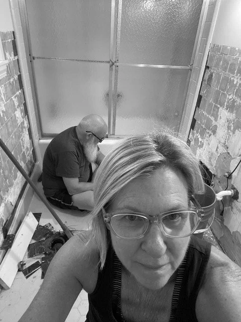 Transformation. That is where I have lived this summer. It has been in the broken tile and concrete dust of tearing out my mother’s 1950’s burgundy and pink bathroom to redress it in shades of white and veins of gray. White travertine luxury vinyl tile (who knew there was such a thing?), ubiquitous white shiplap walls, and the easily installed cabinetry of Ikea.