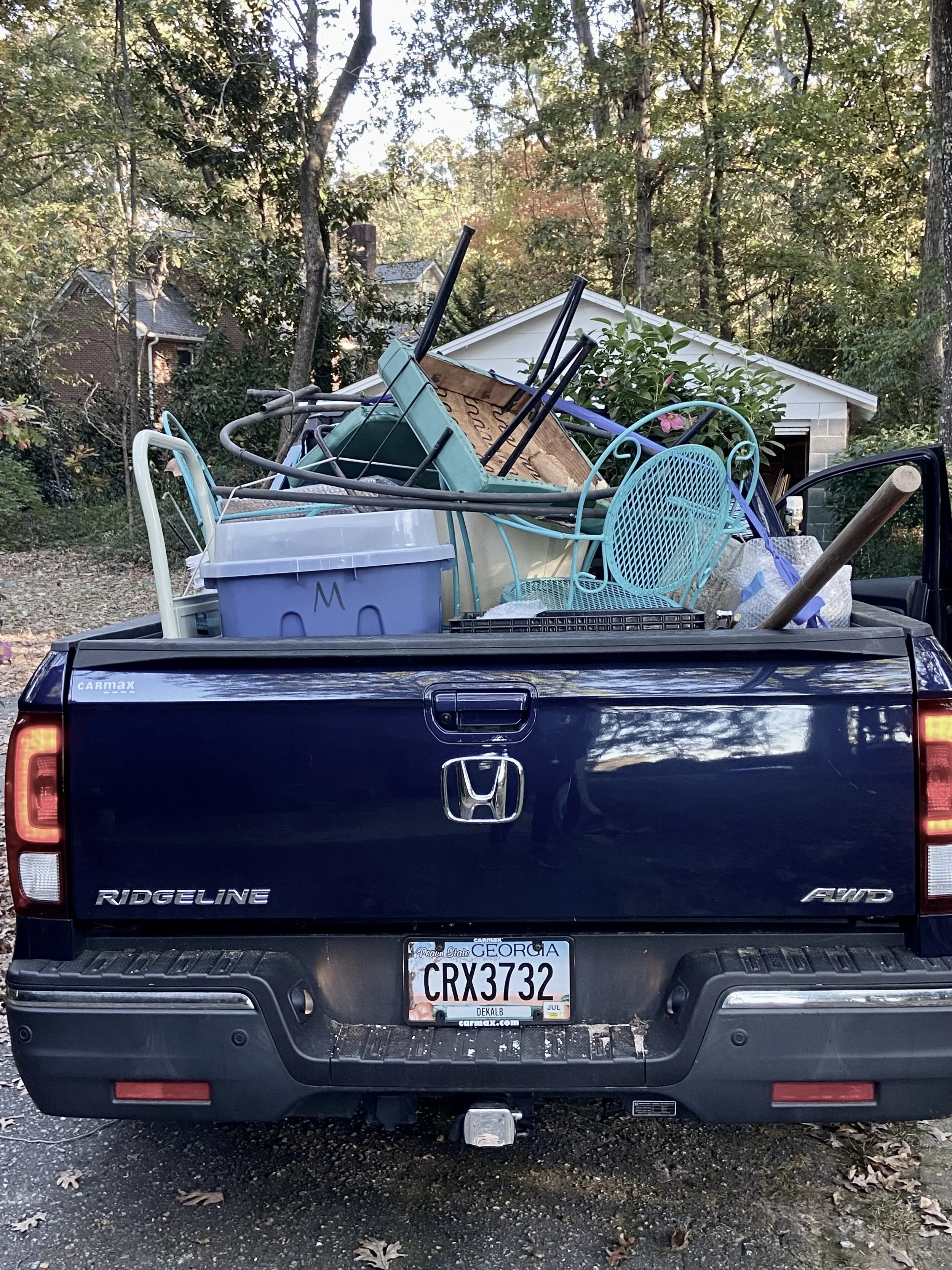 From the back of the pickup: Momma’s outdoor furniture found its new home today at Dara’s house. The love continues. I look forward to gathering around it with the ones I love for yet another meal.